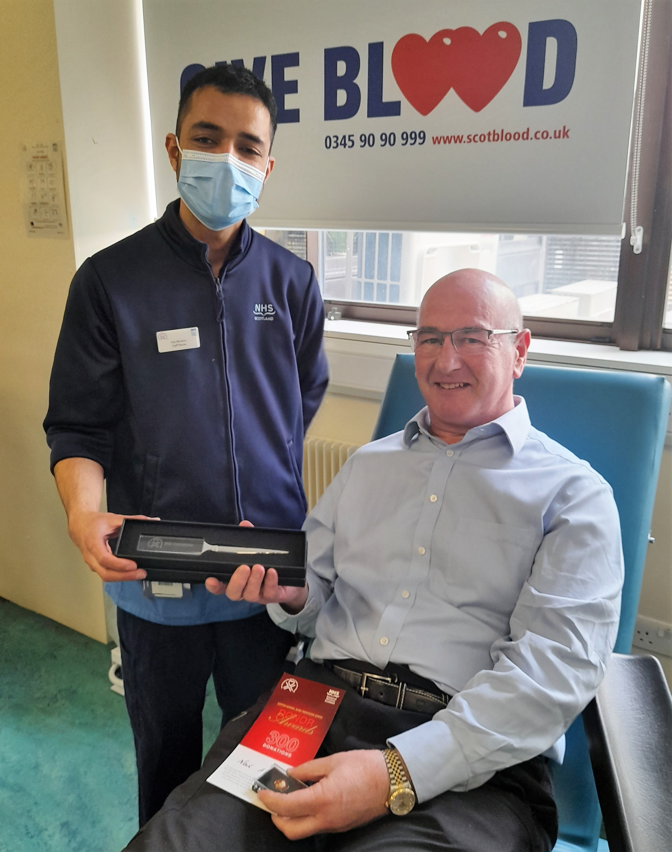 With a combined total of 900 donations and more than 60 years of giving blood between them, another massive thank you goes to two dedicated Aberdeen donors. Thousands of patients will have had their lives saved or improved by these two kind donors and the staff at the Aberdeen Donor Centre were delighted to recently award both Derek and Jim a token of thanks.