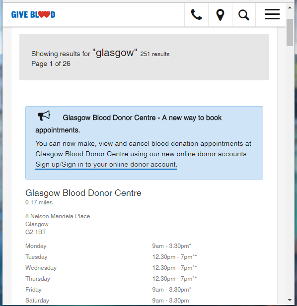 • Donors can also sign up/sign in by searching for your donor centre on scotblood.co.uk, then clicking the 'Sign up/Sign in to your online account' link on the blue announcement banner.